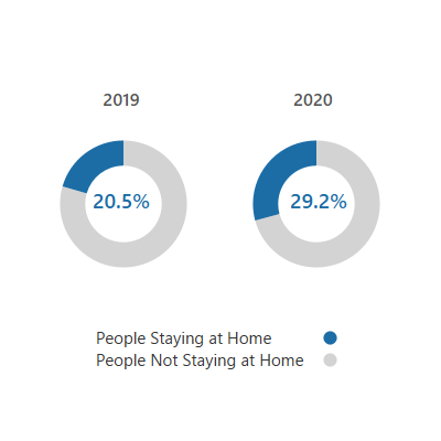 On average through the week, 29.2% of Americans stayed home each day compared with 20.5% during the same period in 2019. That’s greater than the average percentage of people (24.8%) staying home each day during the 4th of July week this year. As the map below shows, Washington, DC (40%), and New York State (36%) led the nation in the percentage of people staying home.
