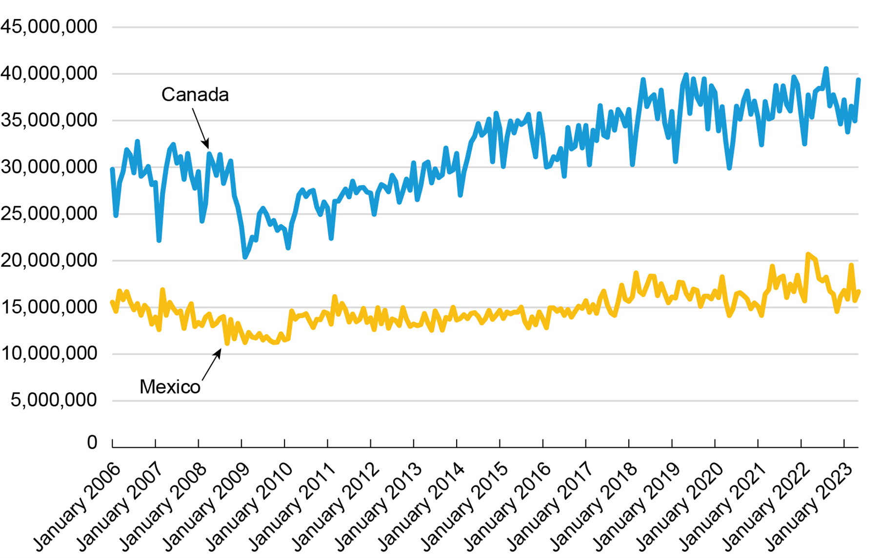Source: Bureau of Transportation Statistics, North American Transborder Freight Data, available at https://www.bts.gov/transborder