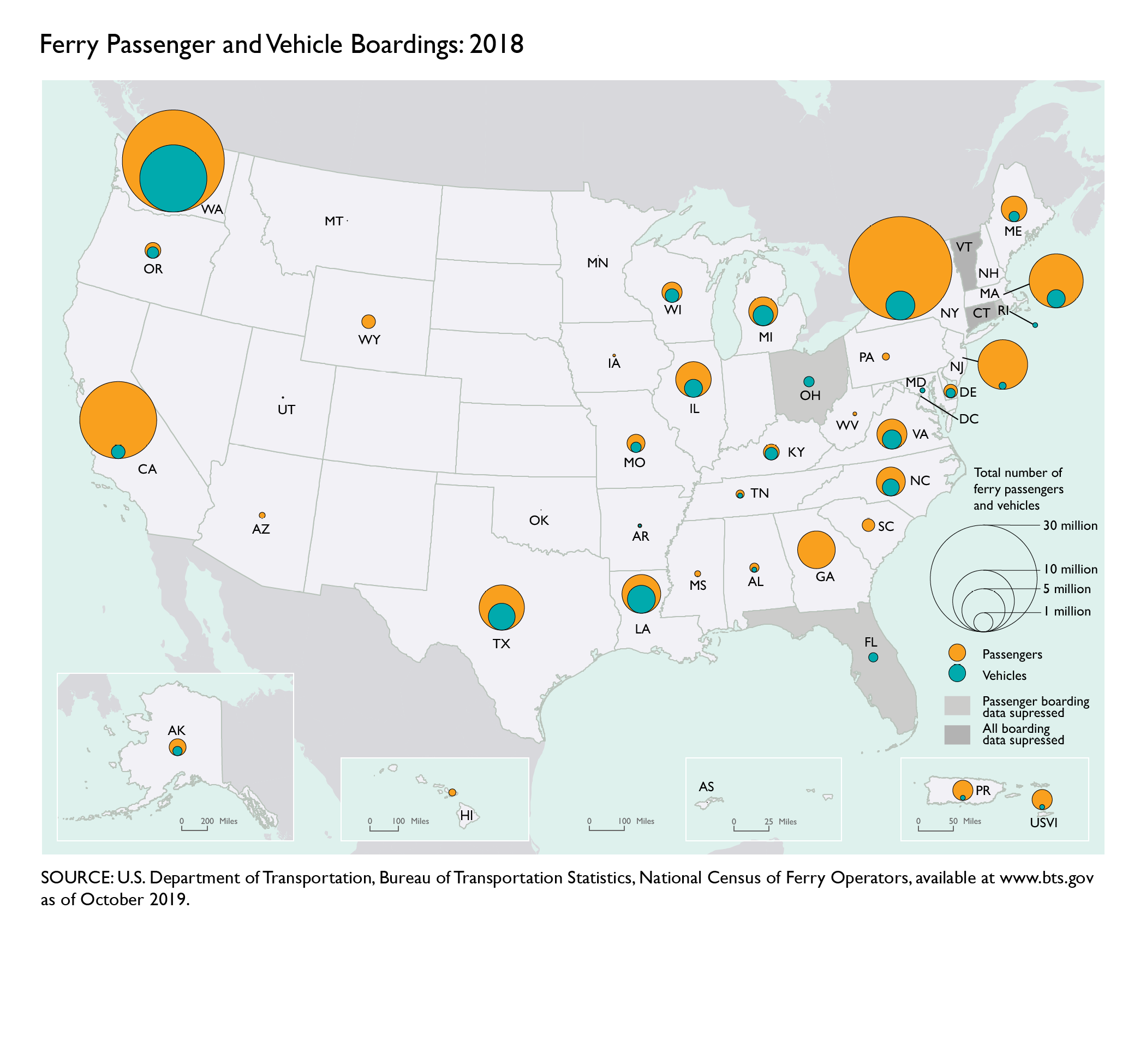 U.S. Department of Transportation, Bureau of Transportation Statistics, National Census of Ferry Operators, available at www.bts.gov as of October 2019.