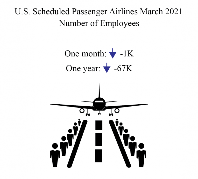U.S. Passenger Airline Employment Down in March 2021 Compared to February